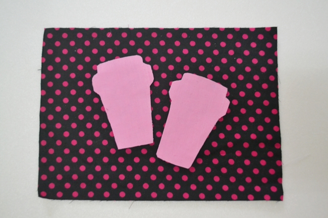 2)Â Â Â Â Â Cut out the cups and covers from the template. 2 from the fabrics and 2 from the fusible interfacing and fuse them together.